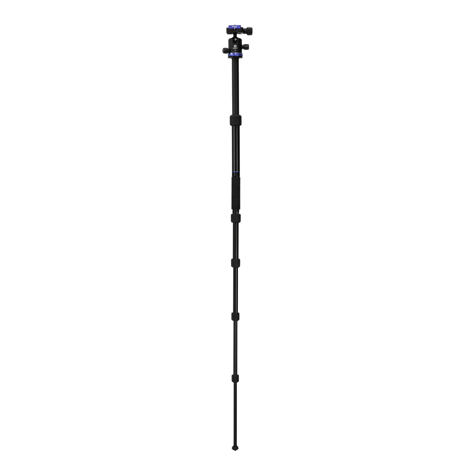 Для съемки в ограниченном пространстве предусмотрена быстрая трансформация штатива в монопод без использования инструментов. Отсоедините одну ножку и центральную колонну, соедините их вместе, монопод готов. Высота монопода 152 см.