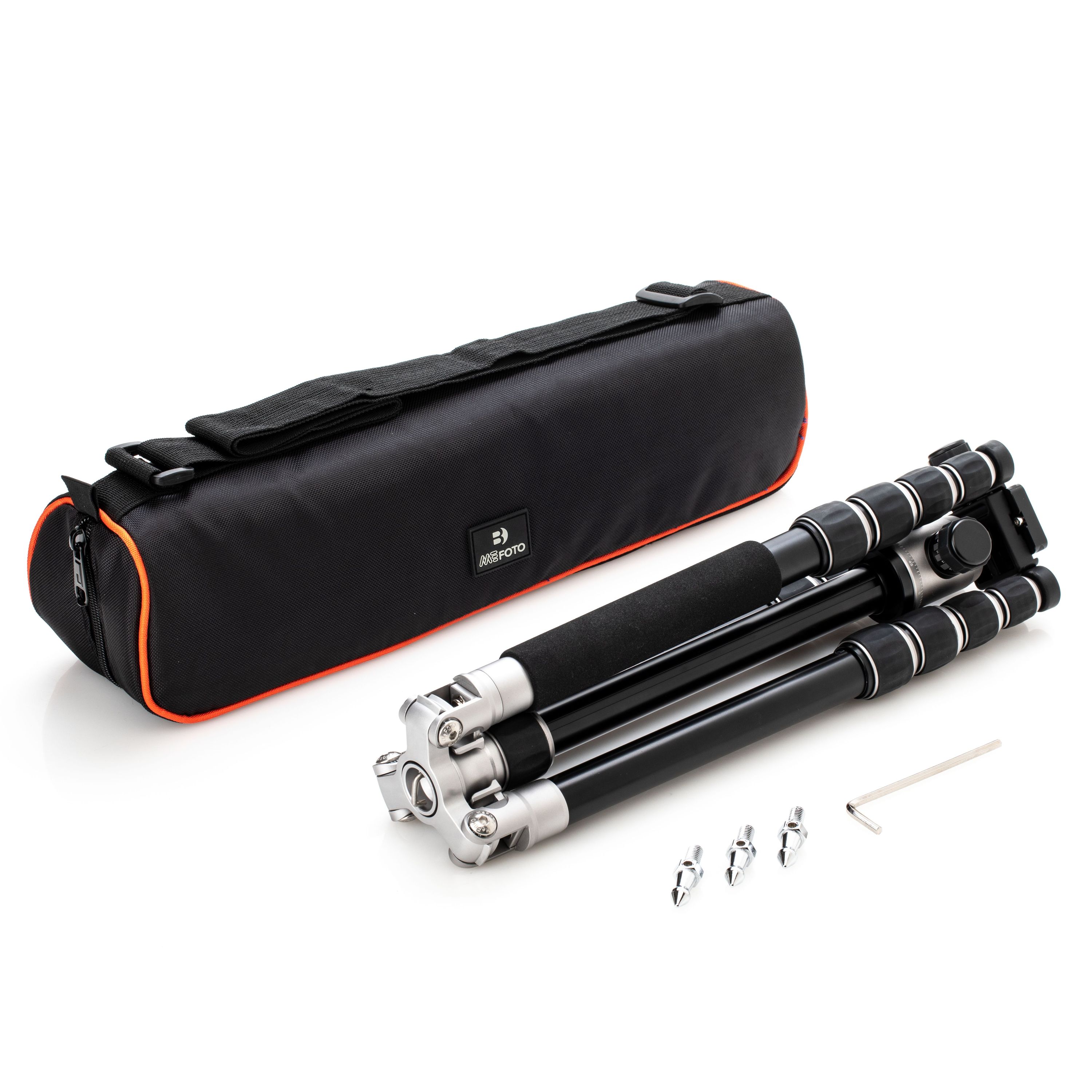 Адаптируемые резиновые опоры гарантируют устойчивость штатива на всех поверхностях, для использования на мягком грунте, траве или камнях предусмотрены металлические шипы.