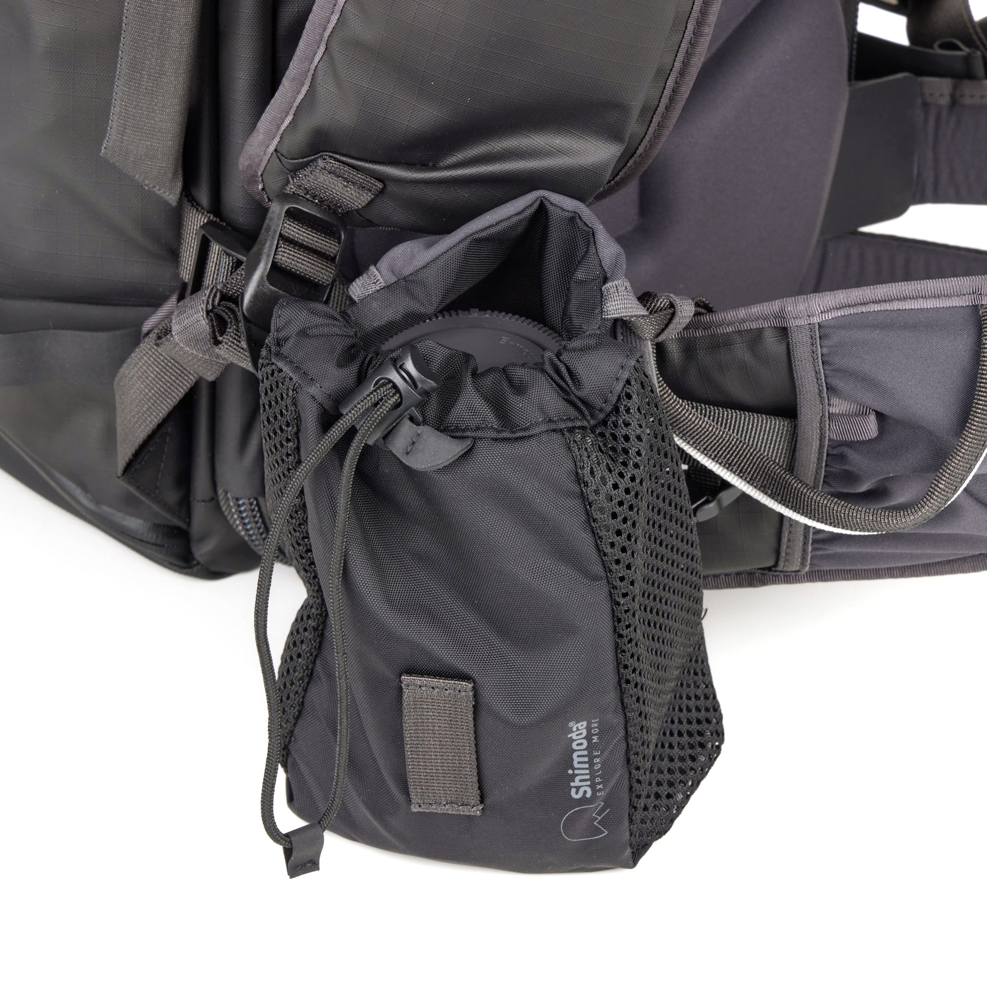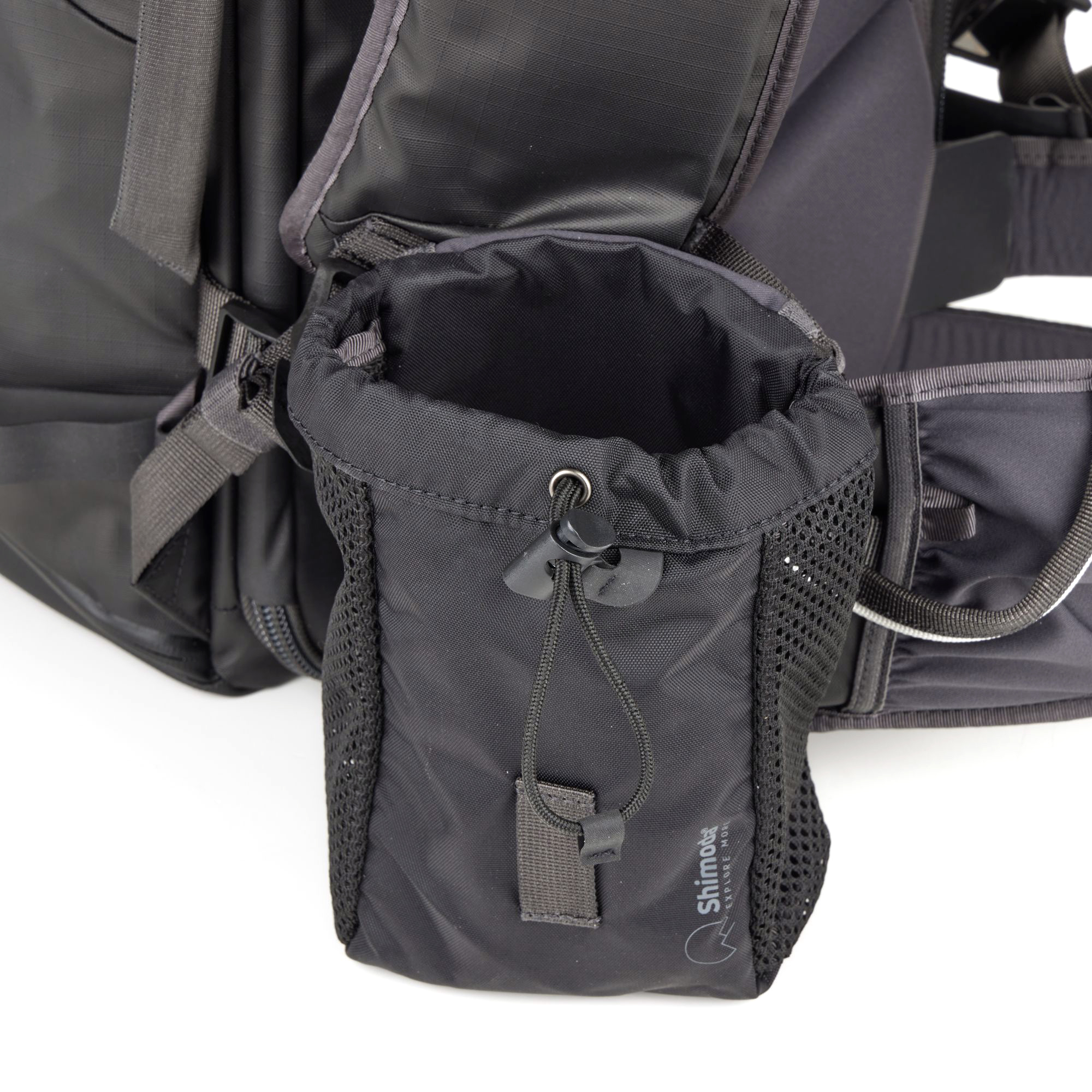 Карманы Shimoda Drop Pocket подходят для размещения закусок, бутылки с водой на 500 мл, объектива 70-200 мм.