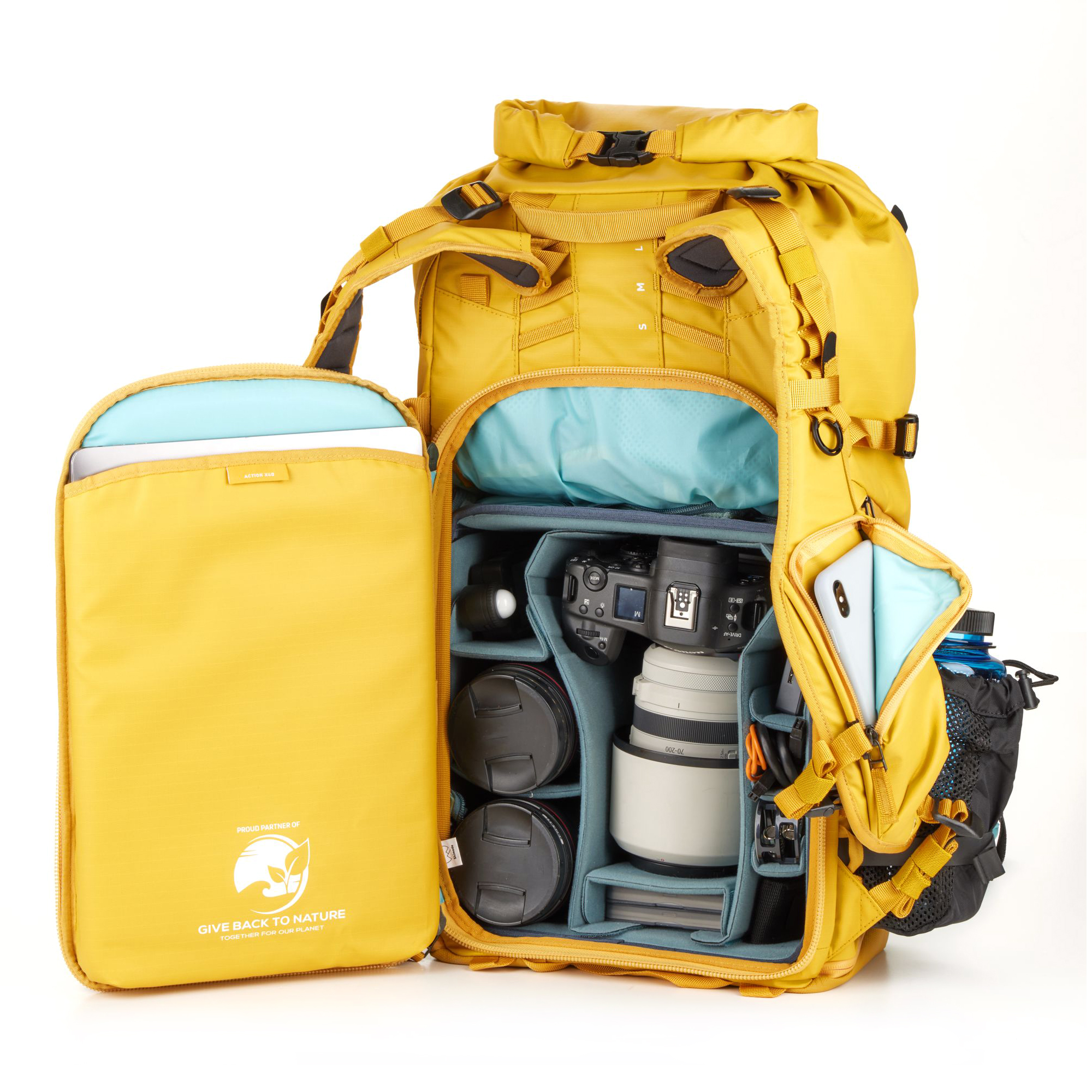 Профессиональный трэвел-рюкзак Shimoda Action X40 V2 Starter Kit Yellow со вставкой для фототехники разработан для фотографов и видеографов, снимающих экстремальные виды спорта, пейзаж, дикую природу в различных погодных и эксплуатационных условиях.