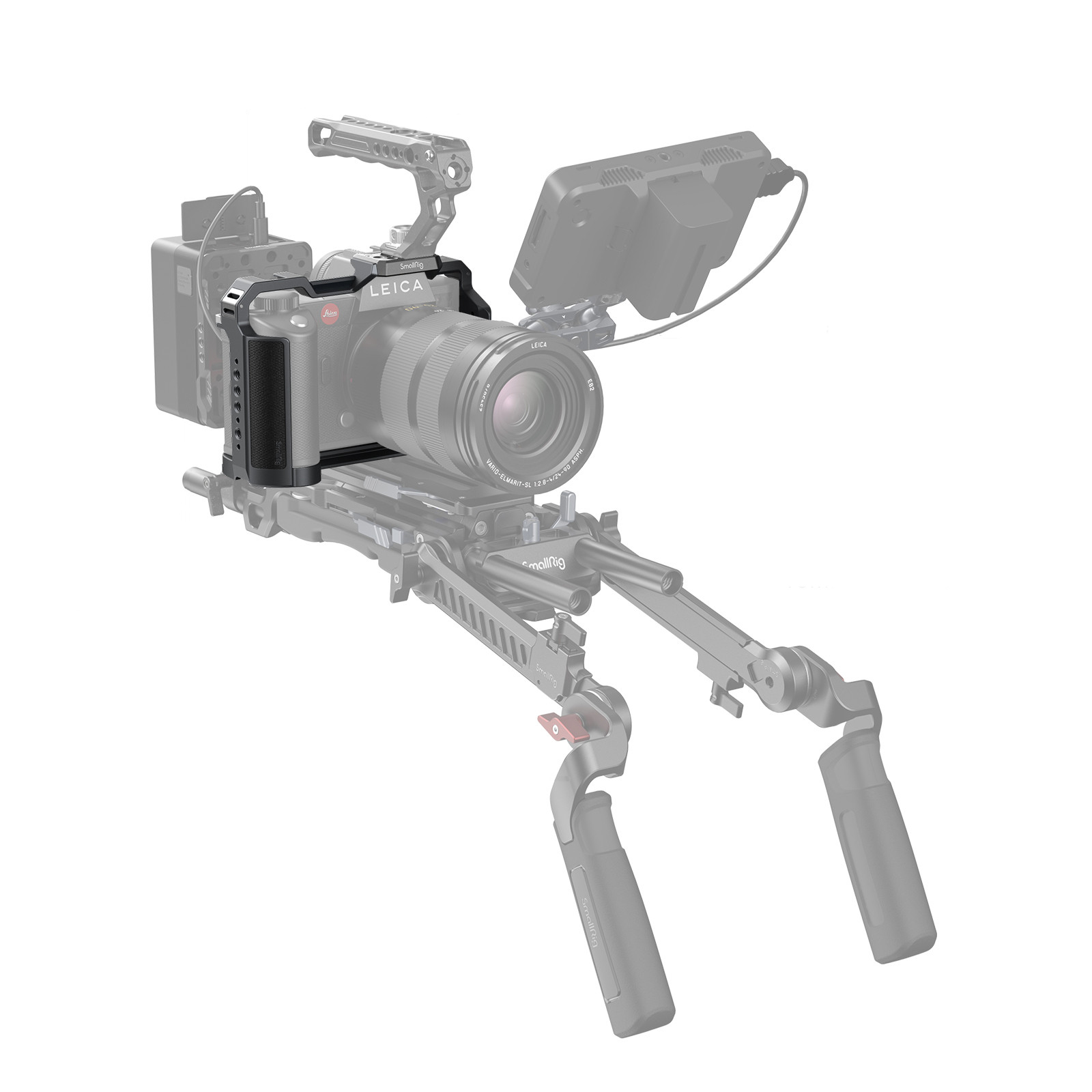 Все элементы клетки с повышенной нагрузкой (проушины для ремня, верхняя площадка и винты крепления) выполнены из титана. Несколько типов креплений (резьба 1/4", ARRI 3/8", разъем «холодный башмак»и адаптер NATO) позволяют установить необходимые для съемки аксессуары и устройства, например верхнюю ручку (SmallRig 2165C), боковая ручка (SmallRig 4015/4346), крепление для монитора (SmallRig 2903B/2904B), микрофон (3487) или светодиодный осветитель SmallRig 4055.