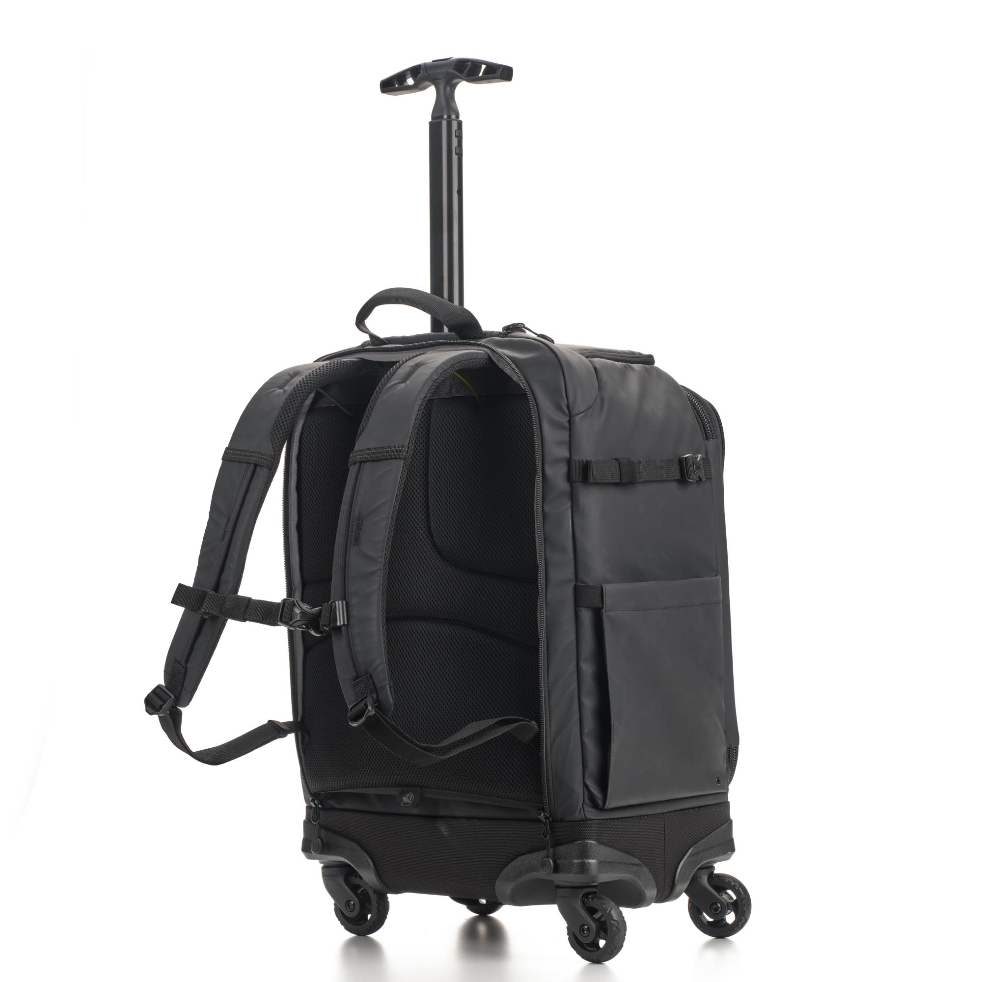 Маневренность перемещения по длинным залам аэропортов и улицам города благодаря четырем поворотным колесам.
