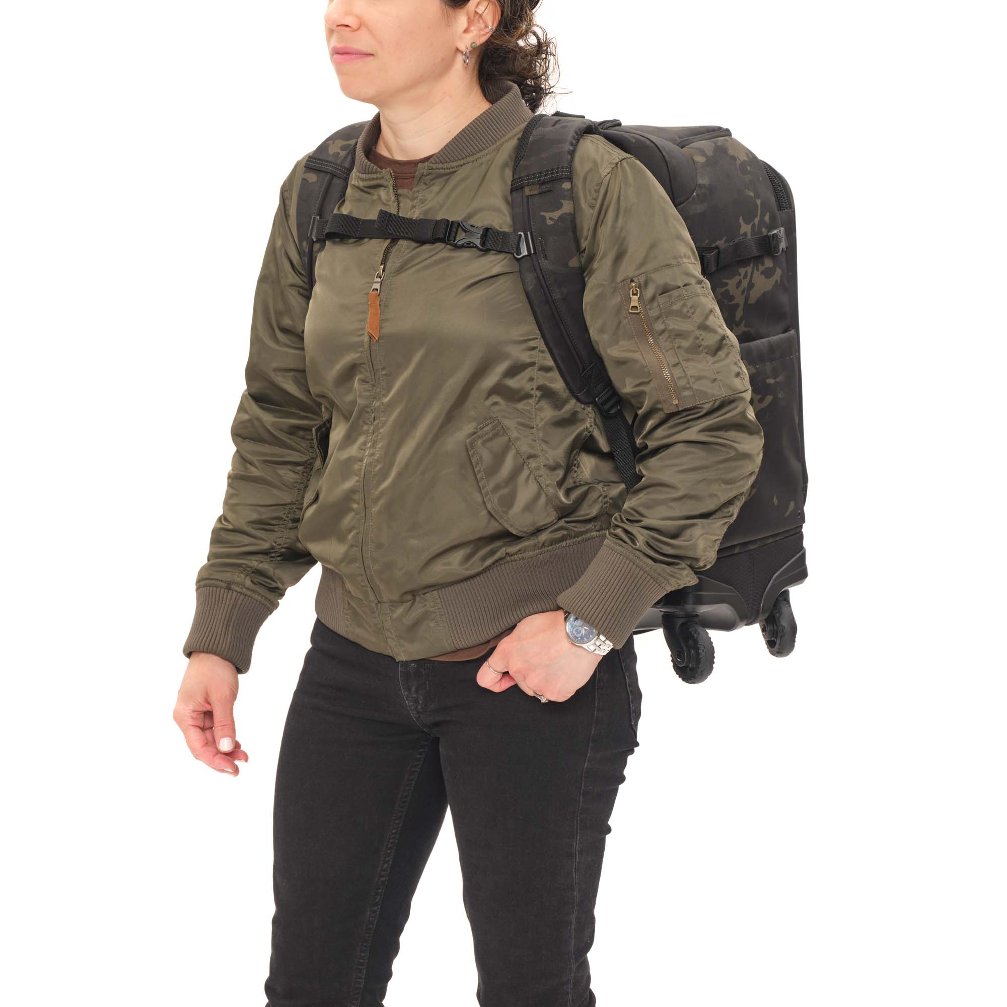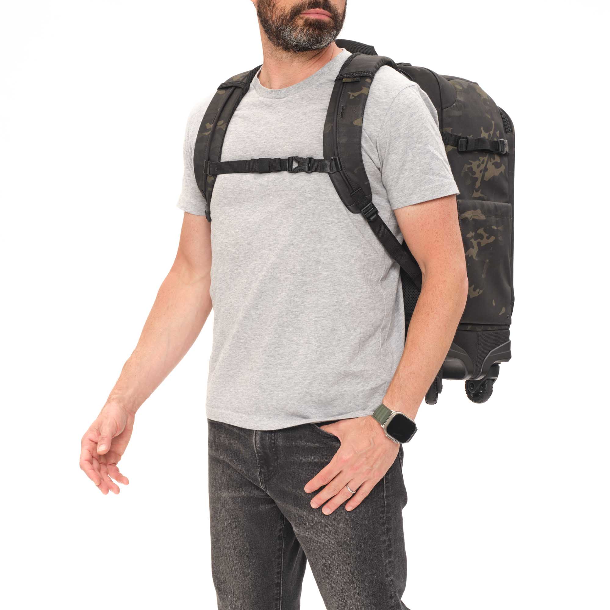 Стропы MOLLE имеют тонкую светоотражающую нить. Вы не останетесь незамеченным в темное время суток на парковке аэропорта или вокзала. А также, легко опознаете свой чемодан на транспортировочной ленте или в багажном отсеке.
