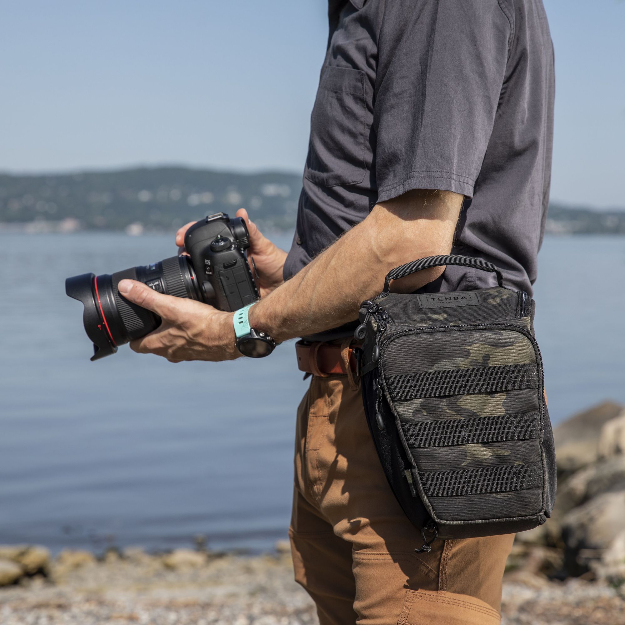 Также, вы можете закрепить холстер на брючном ремне или поясном ремне рюкзаков Tenba Axis.